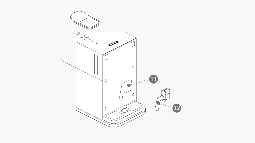 10、清洗程序结束之后,机器将自动关闭。拆下并收好除垢管道。排空滴水盘和废弃胶囊储存盒。向水箱中加入新鲜的常温饮用水。